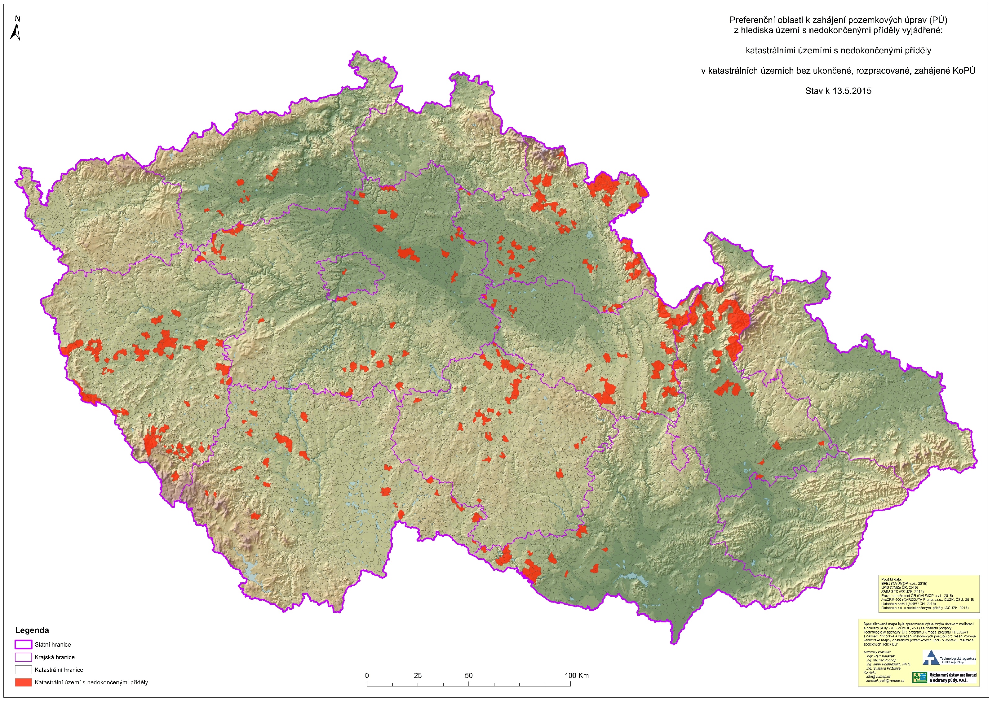 - Mapa preferenčních oblastí k zahájení KoPÚ z hlediska nedokončených přídělů (2015)