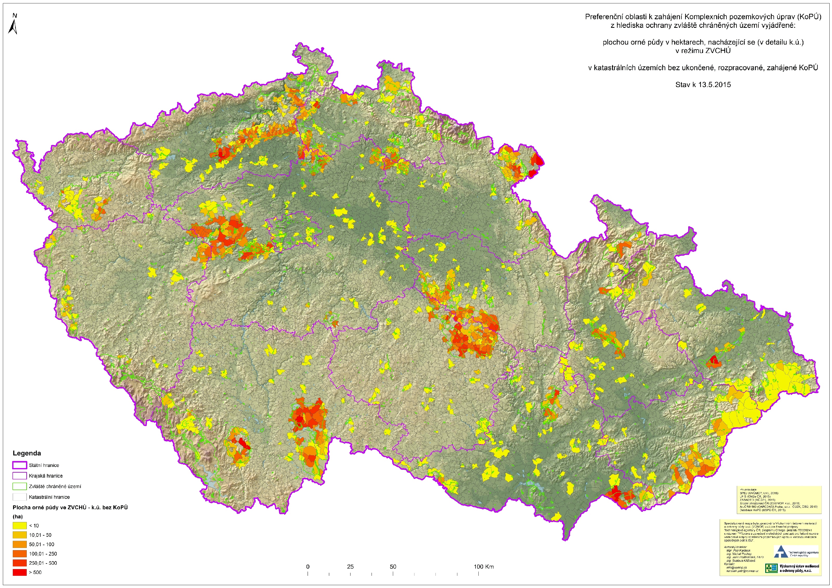 - Mapa preferenčních oblastí k zahájení KoPÚ z hlediska ochrany zvláště chráněných území (2015)