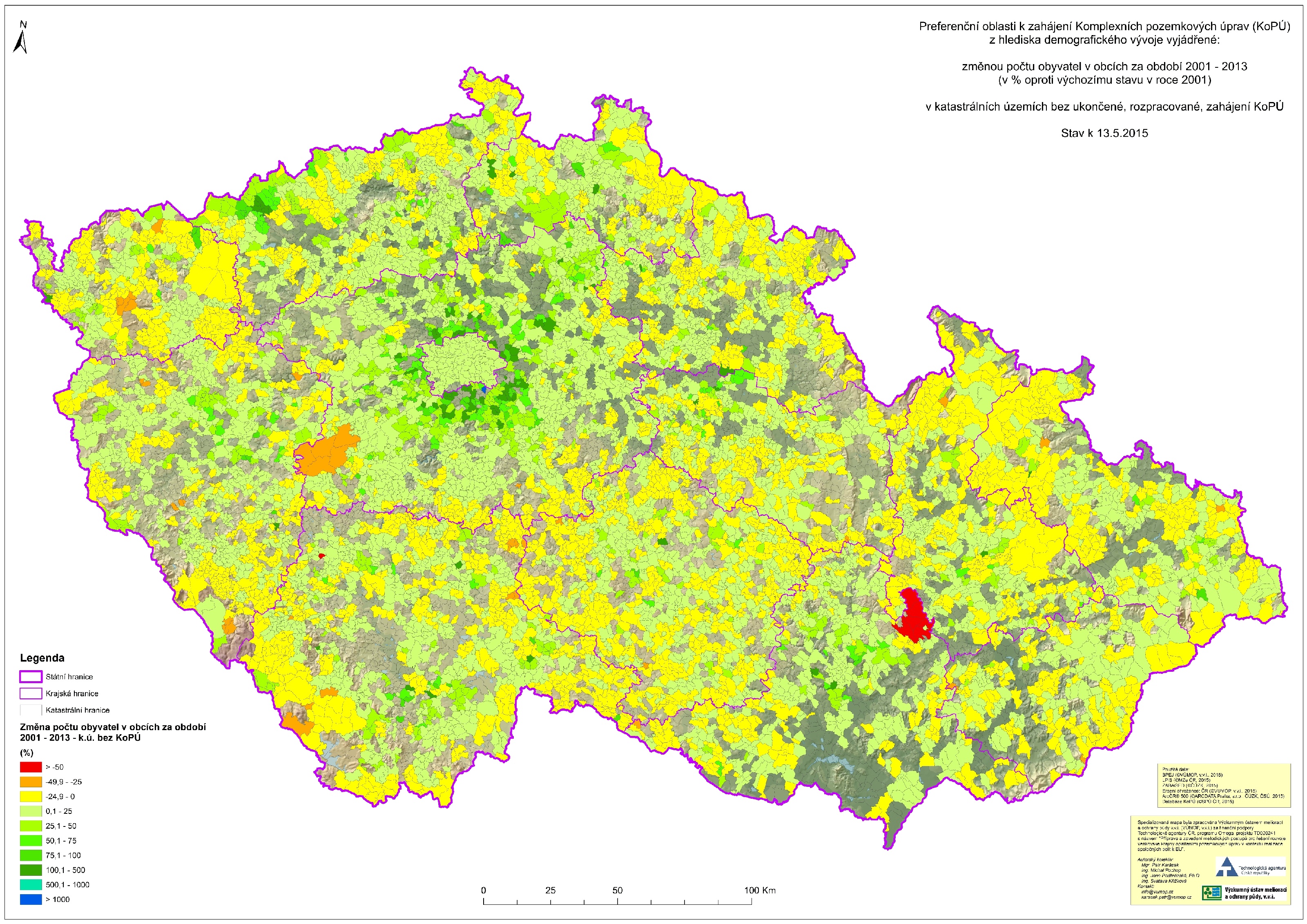 - Mapa preferenčních oblastí k zahájení KoPÚ z hlediska demografického vývoje (2015)
