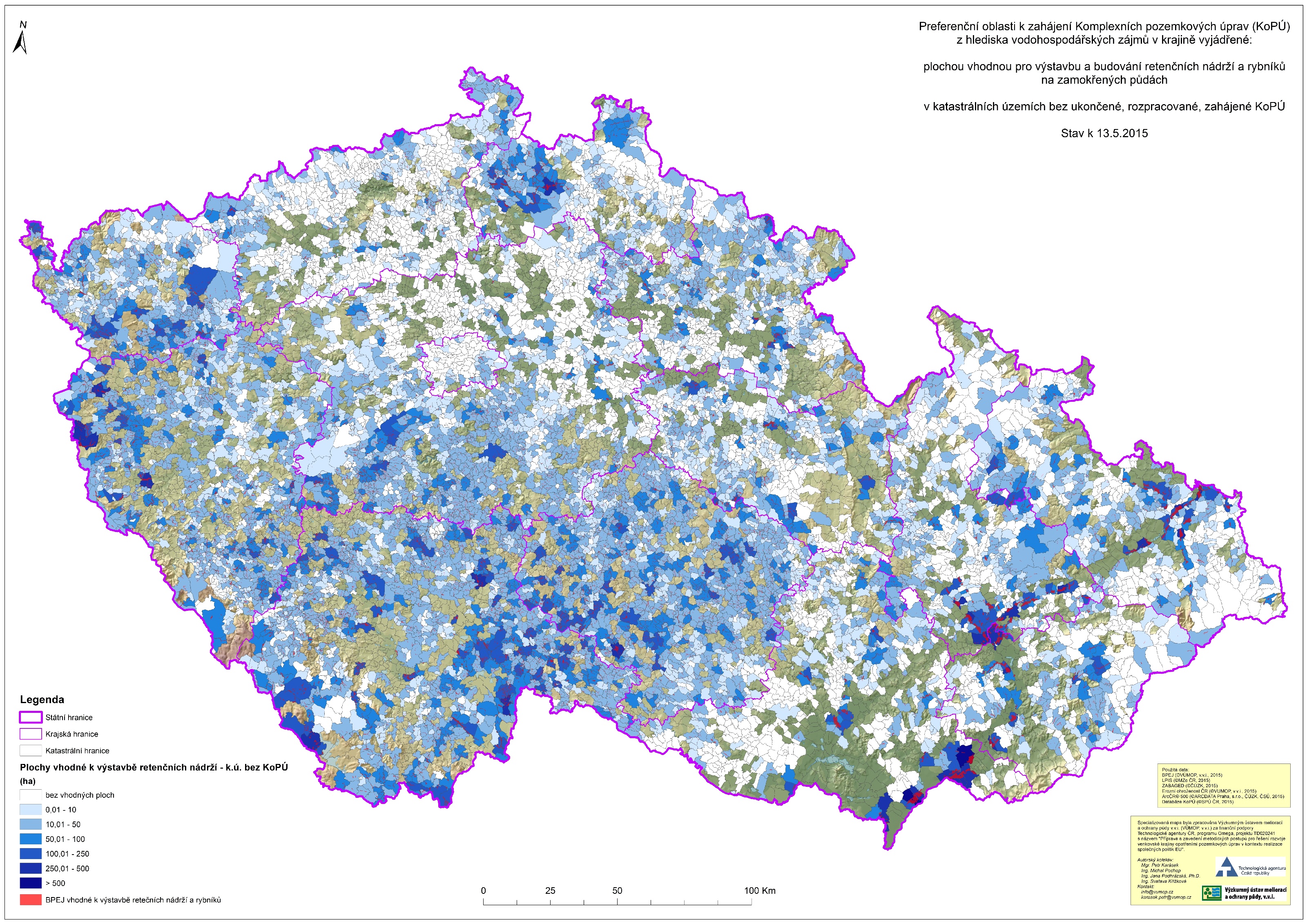 - Mapa preferenčních oblastí k zahájení KoPÚ z hlediska vodohospodářských zájmů v krajině (2015)