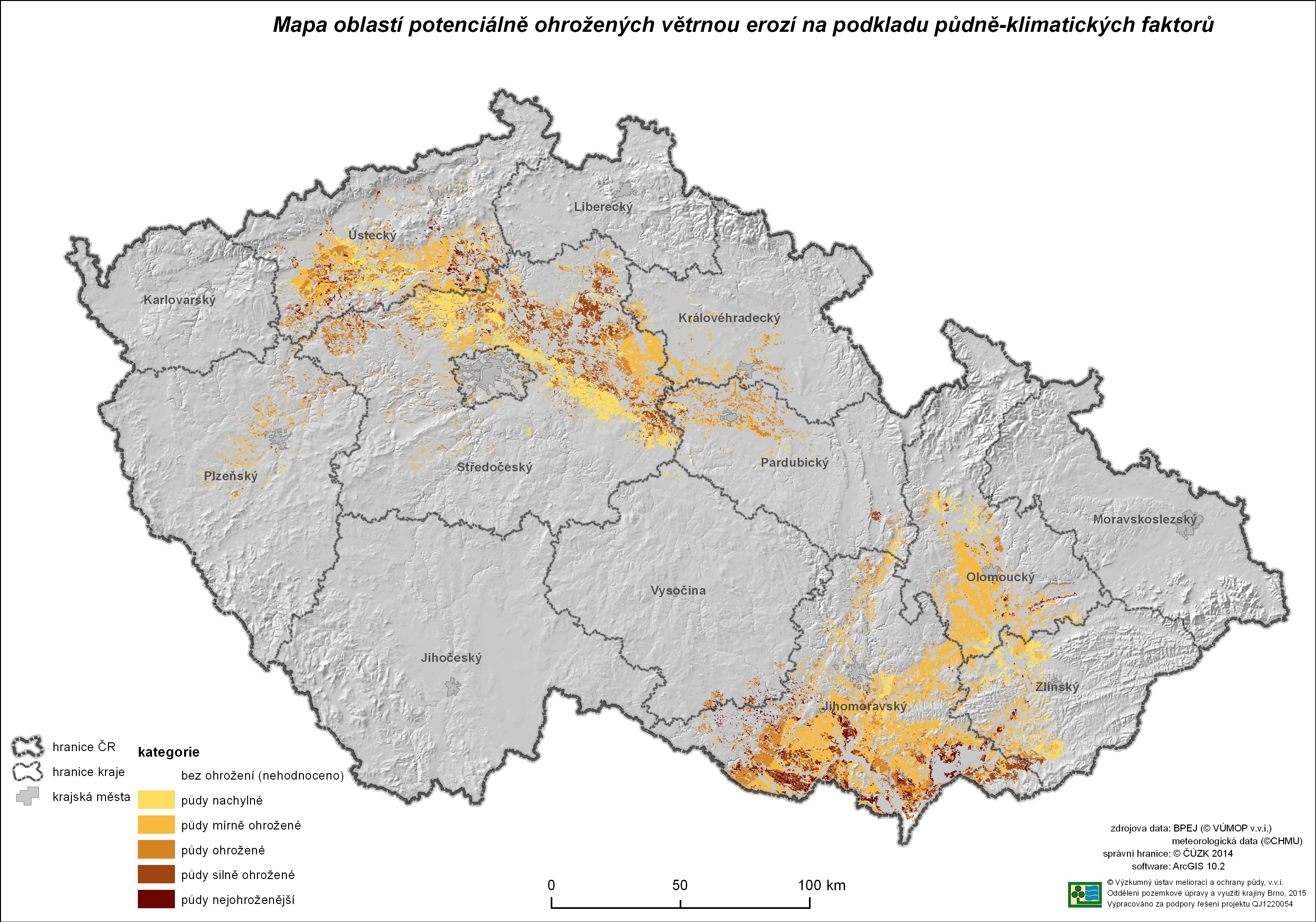 - Mapa oblastí potenciálně ohrožených větrnou erozí na podkladu půdně-klimatických faktorů (2014), text