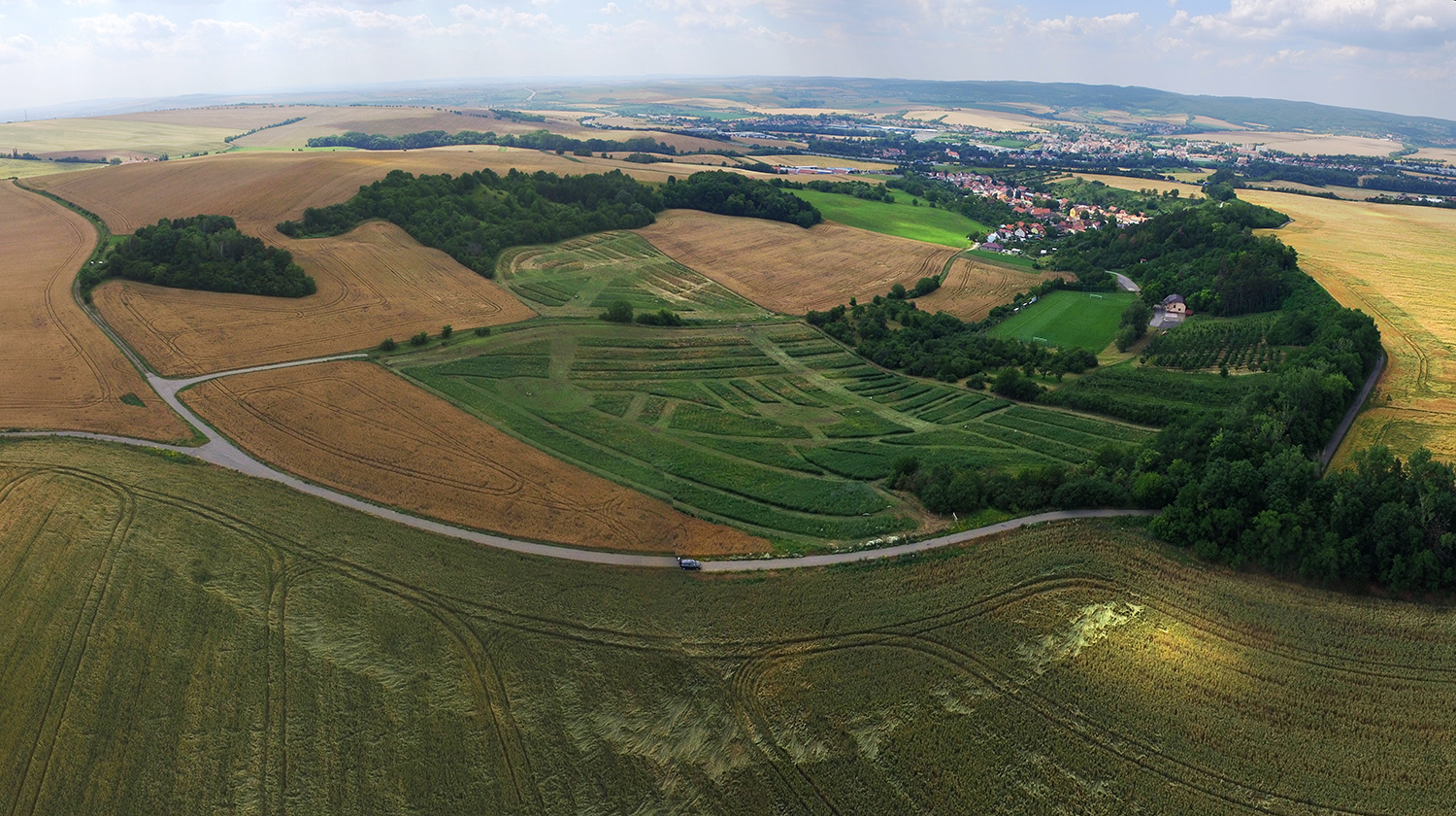 Jednotlivé segmenty zahrnují výsadbu celkem tří kruhů o poloměru 12,5 m s druhově pestrou skladbou autochtonních (původních) lučních bylin dosázených solitérními vysokokmennými dřevinami (dub, javor, jasan, lípa). Tyto lemují i okraje segmentů podél polní cesty. V severním segmentu vybíhá z kruhové výsadby paprsčitá výsadba poloodrostků a keřů. V jižním segmentu je skladba rostlin sázena v pravidelných pruzích různé délky, okolo kruhových míst dále v nepravidelném tvaru. Sazenice jsou vysoké cca od 40 do 120 cm, dle druhu, vyvázány k opěrnému kůlu a mulčovány slámou. Mezi nejvíce zastoupené druhy dřevin patří 8581 ks poloodrostků dubu, jasanu, javoru, habru, lípy, dále 4546 ks lesnických sazenic stejných druhů. Z keřů je zastoupeno 4722 ks ptačího zobu, kaliny, brslenu, javoru, svídy nebo lísky. Zbylá meziřadí jsou oseta krajinnou travní směsí.
