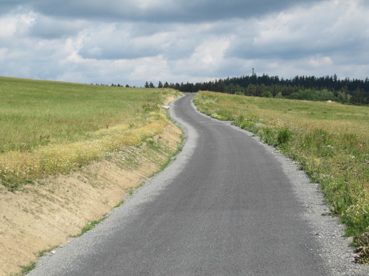 Povrch polní cesty tvoří penetrační makadam.