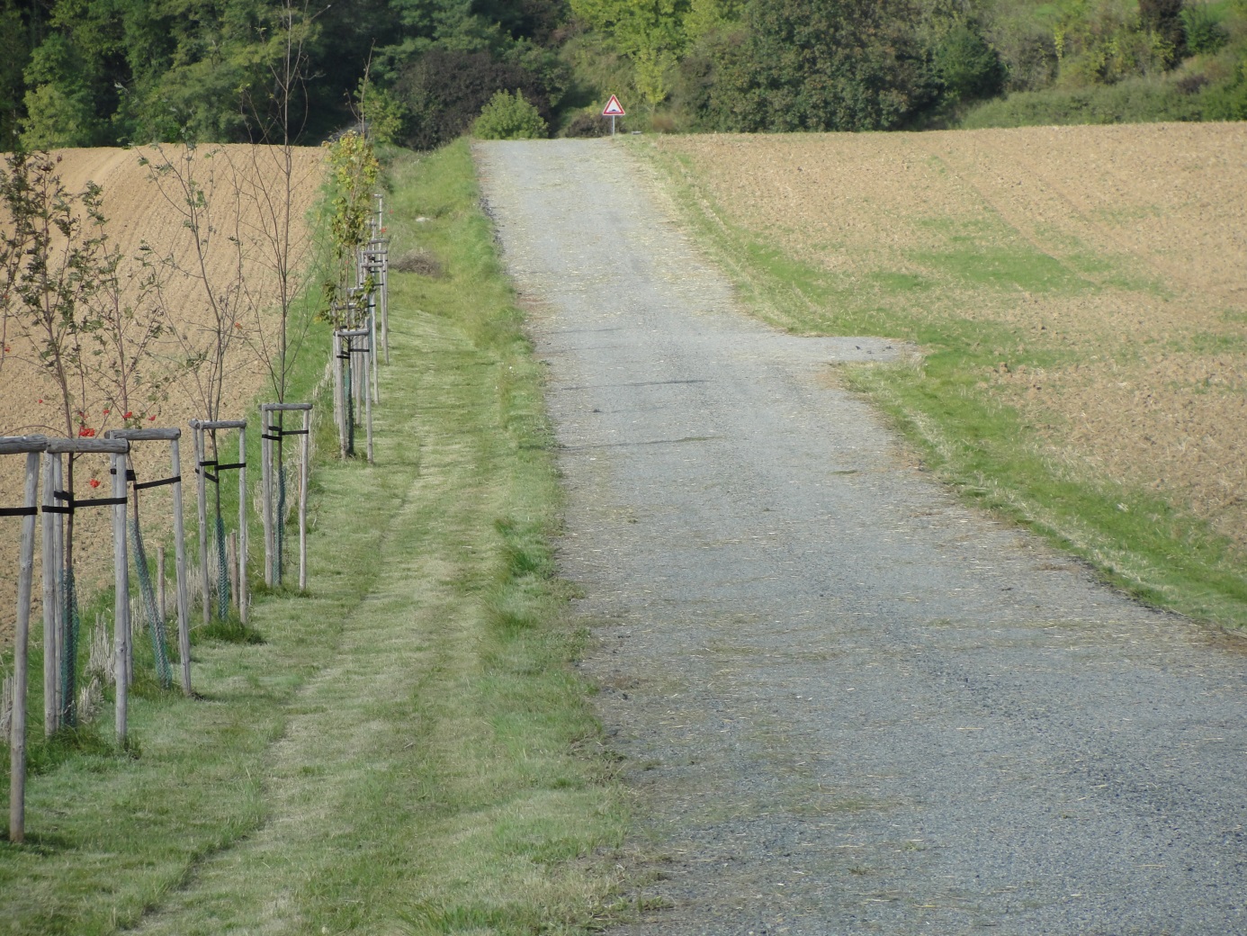 Původní zeleň v první polovině trasy polní cesty prakticky neexistovala, popř. byla tvořena náletovými dřevinami a plevelnými rostlinami. Největší podíl doprovodné zeleně se nacházel v úseku polní cesty, který kopíroval původní úvozovou cestu a kde bylo třeba pouze provést ošetření této zeleně prořezáním s ohledem na pokud možno s minimálním dopadem na tento ekosystém. Vysazeny byly ovocné a okrasné dřeviny v kombinaci s keři ve složení: třešeň, hrušeň, jabloň, jeřáb, javor, hloh, bez, růže, trnka. Doprovodnou zeleň tvoří výsadba 171 ks stromů a 30 ks keřů. Každý strom je zajištěn třemi kůly zatlučenými do trojúhelníku svisle okolo stromu. Strom je vyvázán v jedné úrovni třemi úvazky v jedné úrovni a obalen pletivem vedeným kolem podpěrných kůlů z důvodu ochrany před okusem zvěří. Po výsadbě stromů a keřů byl proveden výsev luční travní směsi.