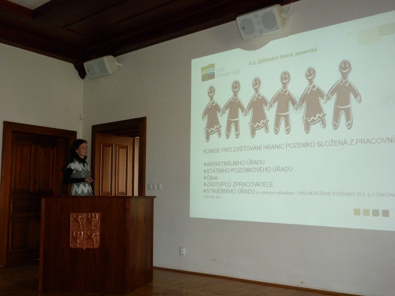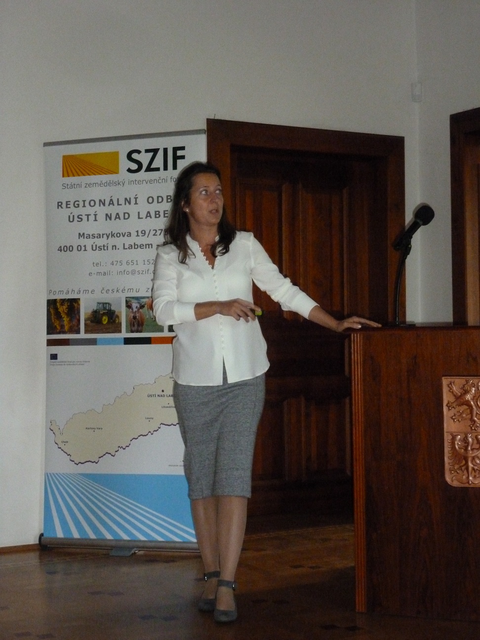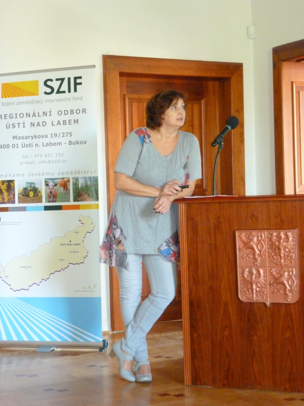 Po přivítání účastníků koordinátorem CSV pro Ústecký kraj, Bc. Tomášem Sazečkem, dostal slovo Ing. Martin Vrba, ředitel KPÚ pro Ústecký kraj, který zhodnotil vynaložené prostředky z PRV z celorepublikového a krajského pohledu a představil pobočku Děčín. Ing. Jitka Blehová, vedoucí Pobočky Děčín provedla účastníky semináře řízením o pozemkových úpravách a představila Regionální dokumentační komisi pro Region VIII – pro Ústecký kraj.