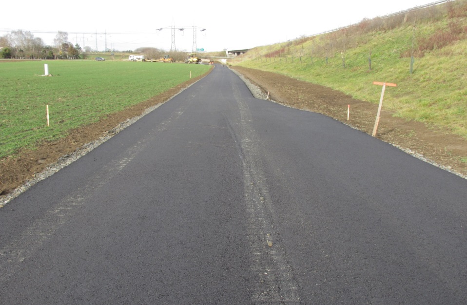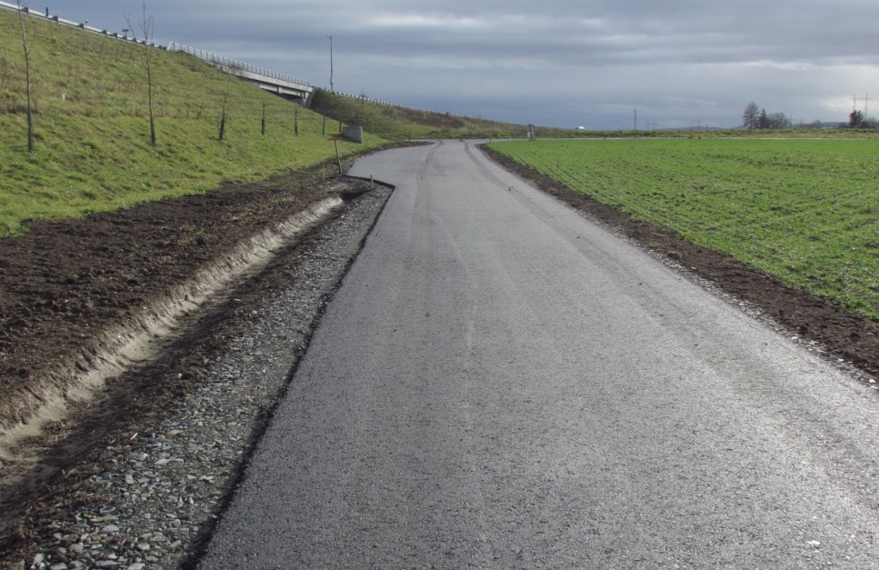 Jedná se o jednopruhovou polní cestu kategorie P4,0/30, s asfaltovým povrchem, o celkové délce 260 m. Cesta zajišťuje propojení stávajících zpevněných polních cest při tělese rychlostní silnice R55 v k.ú. Hulín a prostřednictvím výhybny (v délce 30 m) zajišťuje rovněž vyhnutí protijedoucích vozidel. Současně s realizací polní cesty byla provedena rekultivace stávající nezpevněné polní cesty, která byla spontánně vytvořena na soukromém pozemku. Realizace stavby byla provedena za účelem napravit negativní dopad na soukromé vlastnictví (stávající polní cesta na soukromém pozemku orné půdy) a rovněž za účelem přizpůsobit síť polních cest nově vybudované rychlostní komunikaci R55 a tím minimalizovat negativní vliv rychlostní komunikace na zemědělskou výrobu