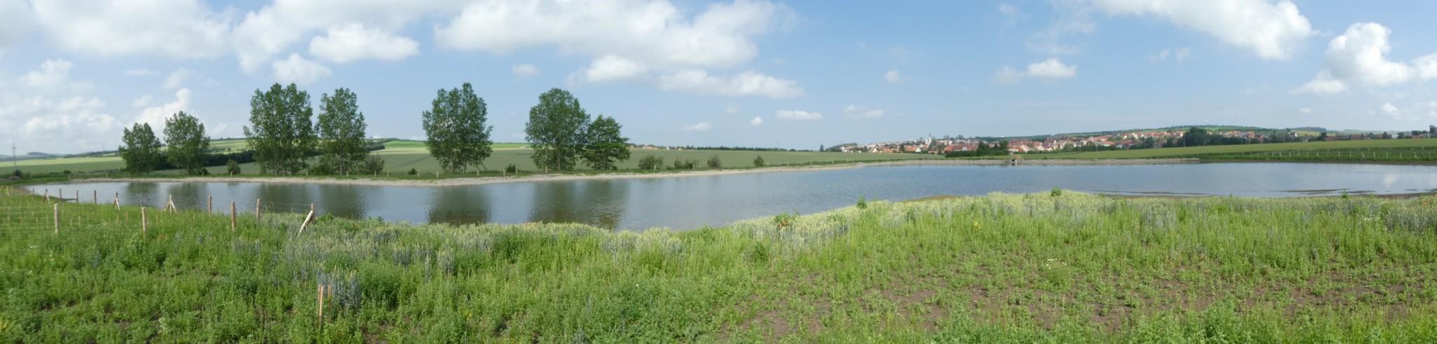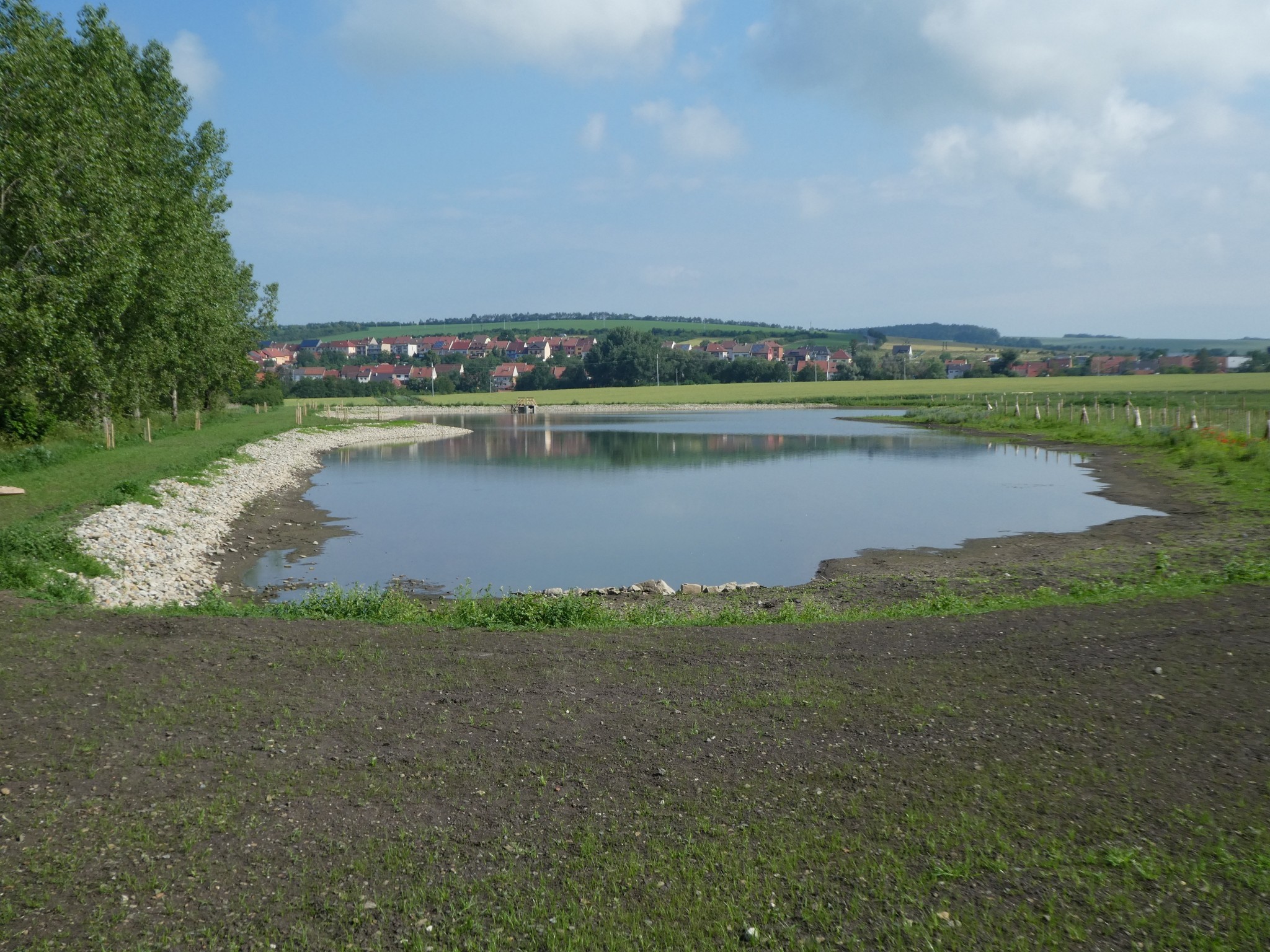 Jedná se o novostavbu vodní nádrže se stálým nadržením vody. V rámci ozelenění jsme vysadili remízky i solitérní stromy a to s akcentací územně přirozených druhů. Vodní nádrž a výsadba komplexního lokálního biocentra, které je pro danou lokalitu velmi vítané, tvoří přirozený celek. Zbudování vodní nádrže s ozeleněním řeší palčivý a vážný problém k.ú. Dolní Němčí tak, že zlepší retenci vody v krajině a lokálně zvýší  biodiverzitu území. Nezanedbatelným efektem projektu je pozitivní změna mikroklimatu. Biocentrum s vodní plochou také láká zejména občany obce Dolní Němčí k relaxaci, a to hlavně pak při parních letních dnech. S ohledem na umístění stavby je kladen důraz na použití přírodních materiálů jako je kámen.