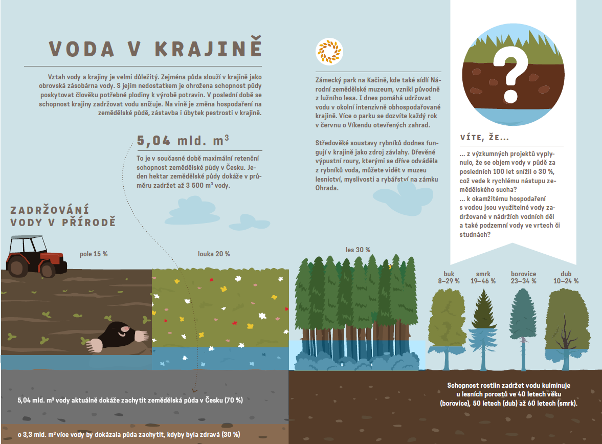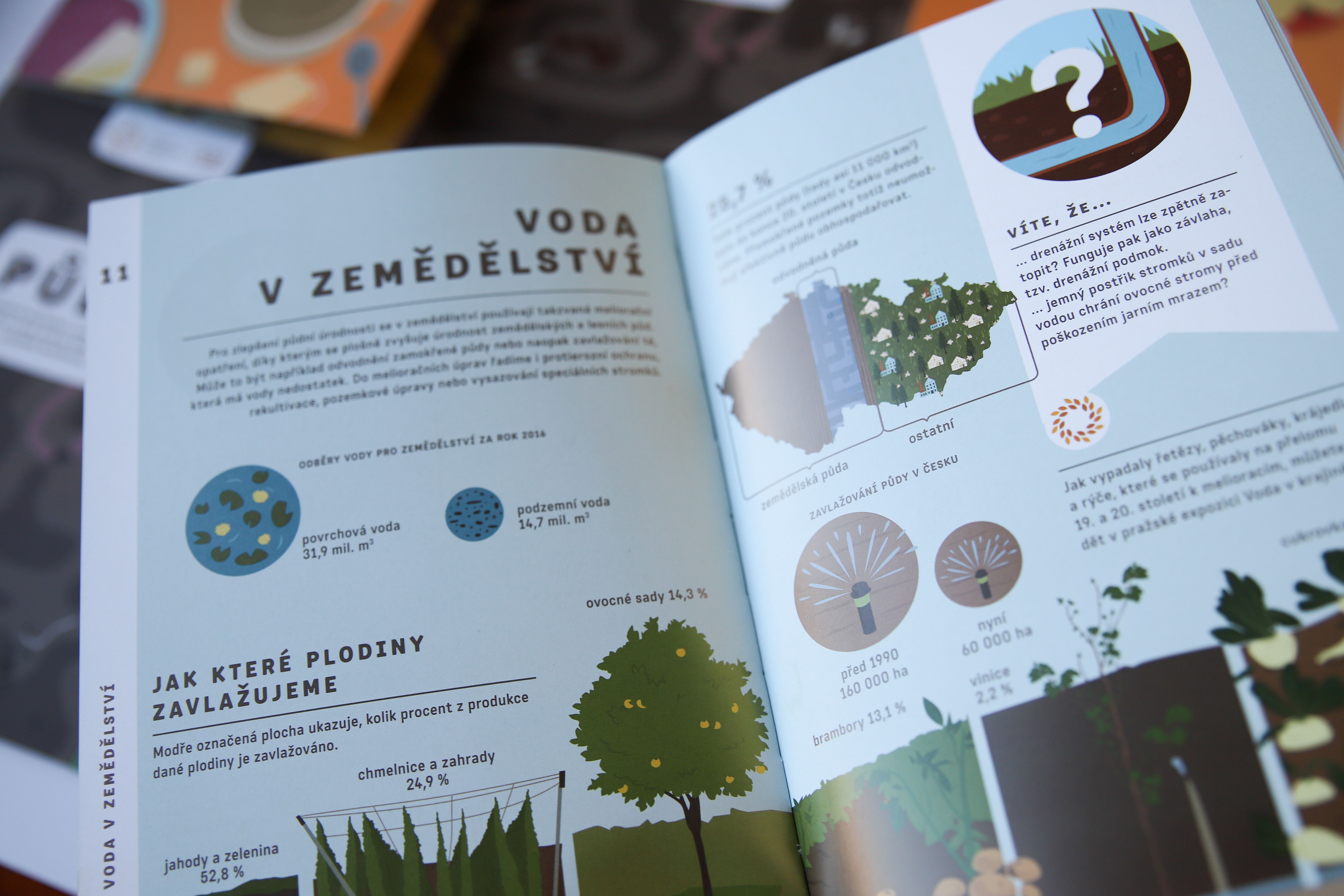 Publikace Půda a Voda vznikly jako součást společného projektu Voda – půda – krajina Národního zemědělského muzea a Státního pozemkového úřadu. Cílem projektu bylo rozšířit nabídku lektorských a doprovodných programů muzea na téma významu vody a půdy pro krajinu a iniciovat zájem návštěvníků o tuto problematiku. Na přípravě publikací se podíleli odborníci z Ústavu zemědělské ekonomiky a informací, Výzkumného ústavu rostlinné výroby, Výzkumného ústavu meliorací a ochrany půdy, Povodí Vltavy, Ústředního kontrolního a zkušebního ústavu zemědělského, Podpůrného a garančního rolnického a lesnického fondu, Zemědělského svazu či České akademie zemědělských věd a Ministerstva zemědělství. Na publikaci Potraviny se podílely Ústav zemědělské ekonomiky a informací a Knihovna Antonína Švehly, Český statistický úřad, Potravinářská komora České republiky, Česká zemědělská univerzita v Praze a Podpůrný a garanční rolnický a lesnický fond. Děkujeme.