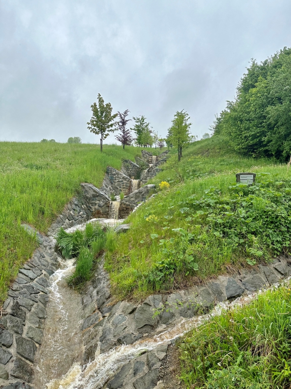 Na zdravice čestných hostů navázaly prezentace k hlavním tématům konference a jednání pracovních skupin. V rámci pracovní skupiny Odolný venkov představila účastníkům pozemkové úpravy ředitelka Odboru pozemkových úprav Jaroslava Kosejková. Jejich jedinečnost a přínosy v širších souvislostech popsala také Zuzana Skřivanová, projektantka a členka Českomoravské komory pro pozemkové úpravy. Odborný program doplnila série exkurzí za projekty podpořené z Programu rozvoje venkova. Jedním z nich byl též vybudovaný příkop sloužící k neškodnému odvedení vody z okolních pozemků, realizovaný naší pobočkou ve Frýdku Místku. A díky nepřestávajícímu dešti, který provázel celou konferenci, se mohli účastnici o jeho funkčnosti přesvědčit na vlastní oči.