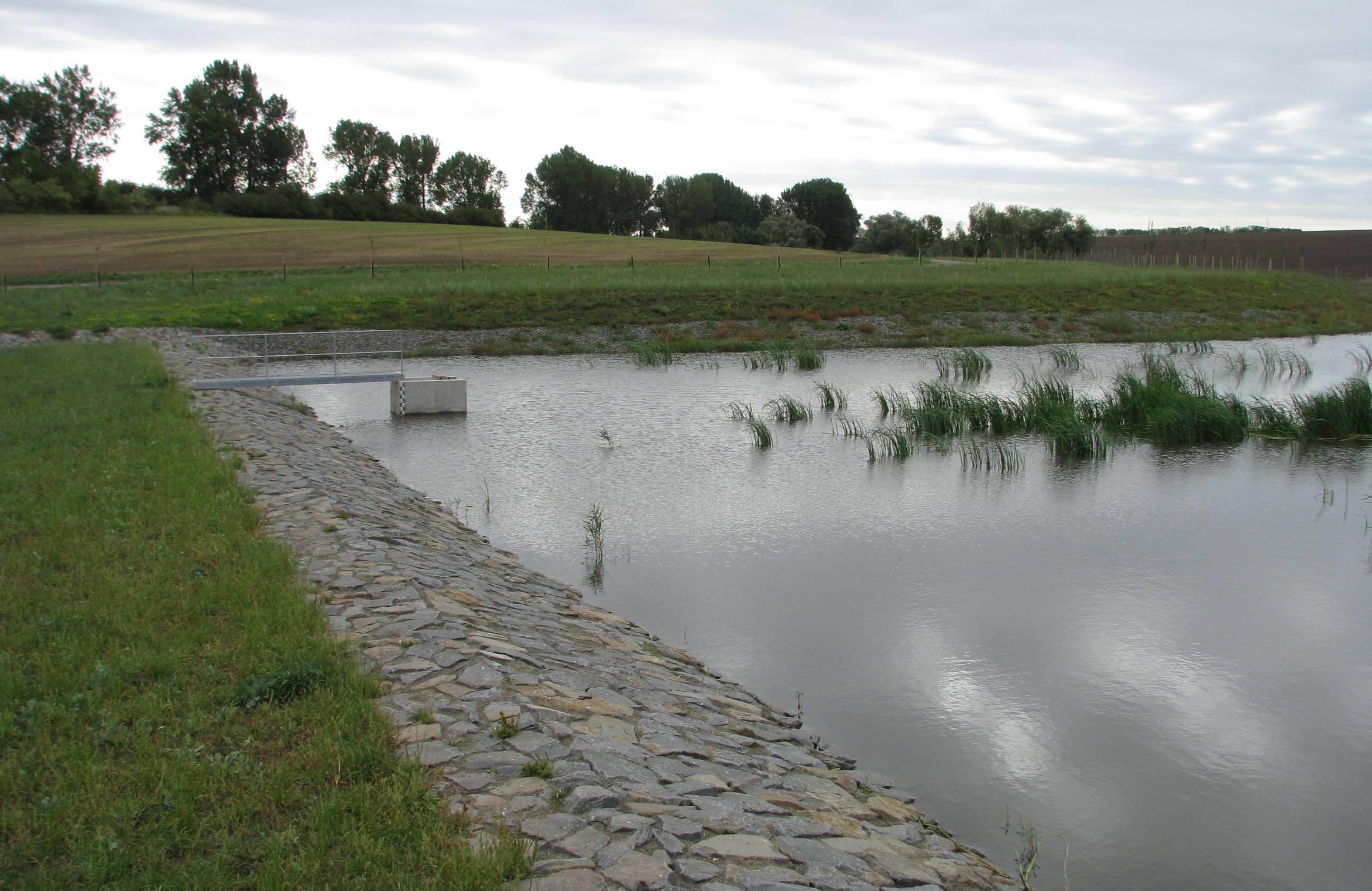 Samotná vodní nádrž je koncipována jako průtočná o ploše 4,6 ha a akumulačním objemem 63,5 tis. m3 vody. Hráz nádrže má výšku 2,7 m. Stavba vodní nádrže byla doplněna výsadbou biocentra s 4 600 kusy stromů, keřů a bylin. Součástí stavby je rovněž 1,15 km asfaltobetonových a 1,25 km travnatých polních cest sloužících ke zpřístupnění pozemků vlastníků v přilehlých místních tratích.